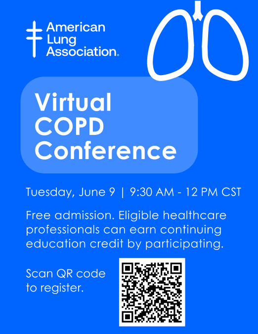 Join us on June 9th for a Virtual COPD Conference. Free to attend! Presentations by subject matter experts! Nurses & Respiratory Therapists can earn 2.5 CEU's by participating.